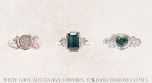 I hold special gems I’ve collected over the years (can’t wait to show you!) and can source Australian sapphires, Argyle Champagne Diamonds, and opals, along with whatever else your heart may desire. Recycled gold is used for all cast bespoke work.